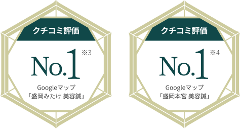 ※3 Googleマップクチコミ「盛岡みたけ 美容鍼」評価5.0(2024年6月時点自社調べ)※4 Googleマップクチコミ「盛岡本宮 美容鍼」評価5.0(2024年6月時点自社調べ)